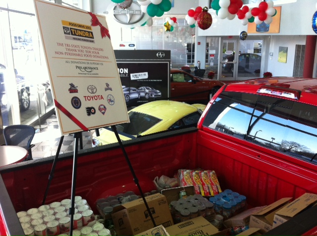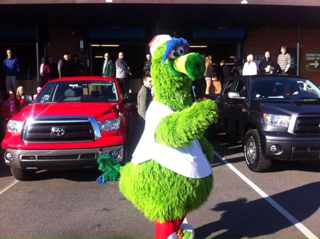 On Friday December 14th, 2012, Ardmore Toyota & Central City Toyota participated in the Annual Toyota Tundra Food Drive for Philabundance. $1000 of Food was purchased and dropped off at the Philabundance Food Distribution Center in South Philadelphia. Among the attendees included members of the Phillies, Flyers, Toyota Dealers, Philabundance Volunteers and of course the Phillie Phanatic was there. To learn more about Philabundance click here: http://www.philabundance.org/