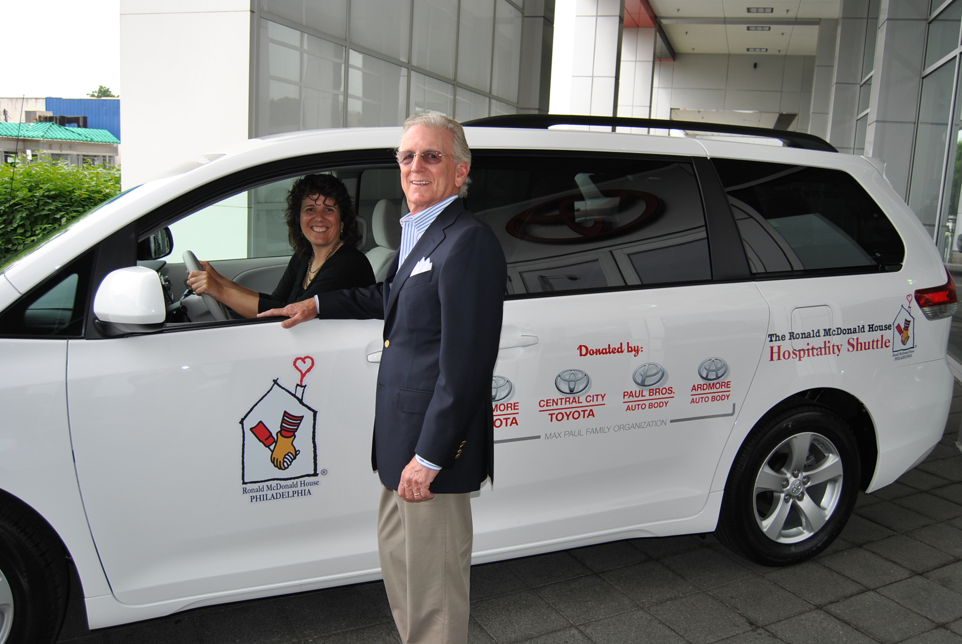 On Tuesday, June 18th, 2013, Susan Campbell, Executive Director of the Philadelphia Ronald McDonald House (PRMH) and Linda Parry, the Director of Volunteers at PRMH arrived at Ardmore Toyota to accept a very generous donation from Max Paul. The Max Paul Family Organization through Ardmore Toyota, provided PRMH with two new 2013 Toyota Sienna vans to provide reliable transportation to and from the hospital for families staying at PRMH while their children receive lifesaving medical care.
