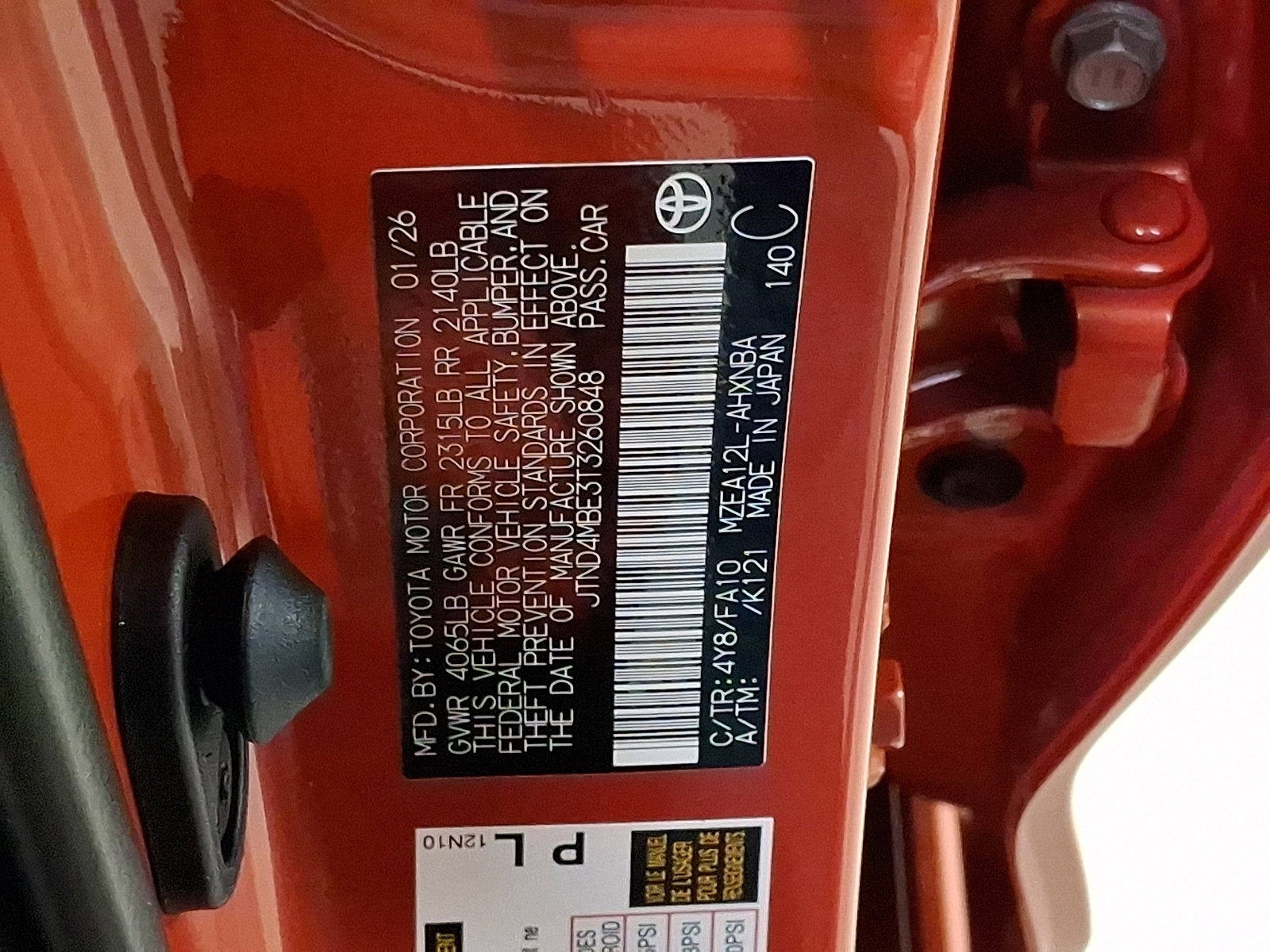 VIN: JTND4MBE3T3260848