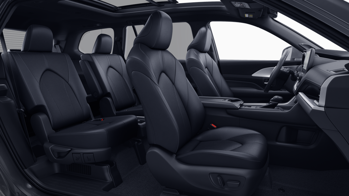 • 7-passenger seating with second-row fold-down captain's chairs and fold-down inboard armrests, adjustable headrests and two cup holders mounted on the floor; and 60/40 split, fold-down third-row seats with sliding headrests and recline function