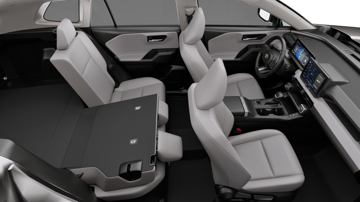 • 60/40 split reclining fold-flat rear seat with center armrest and cup holders